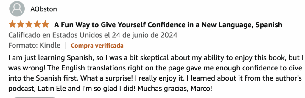 This book to learn Spanish doesn’t teach Spanish grammar. Instead, it’s intended to put into practice what you’ve learned so far in a captivating story to ignite your Spanish language adventure.